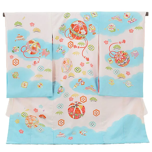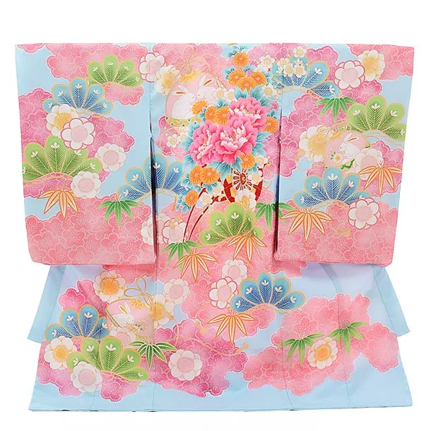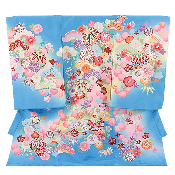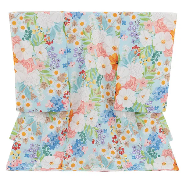 女児産着 お宮参りレンタル2197 くすみブルー地 花