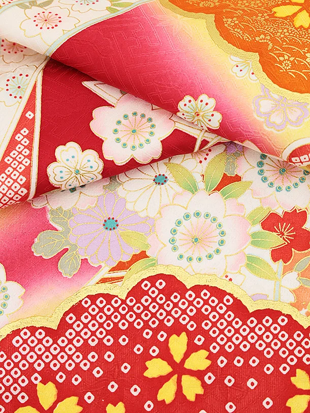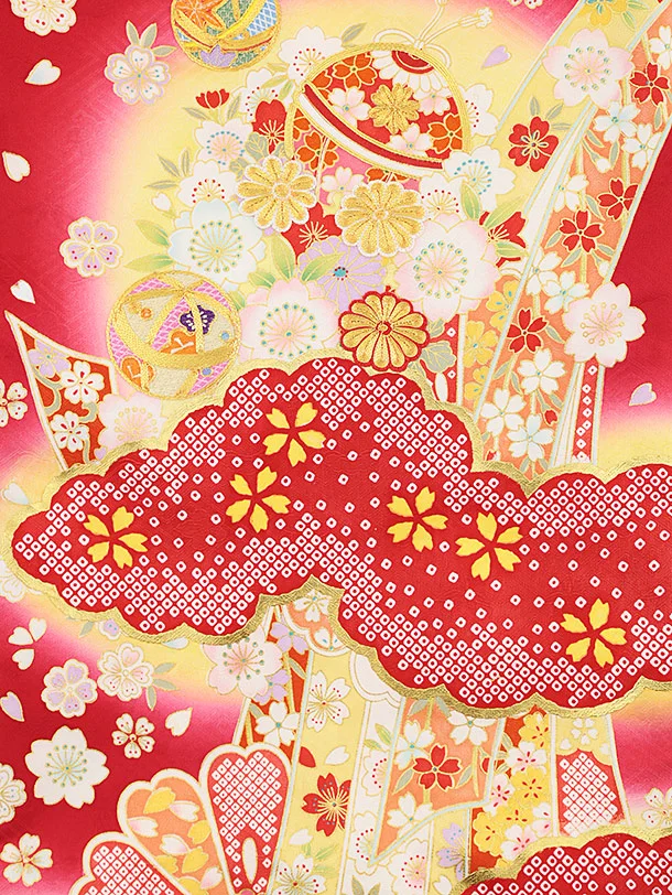 女児産着 お宮参りレンタル2245 伝産 赤地 雲取りに鈴 熨斗