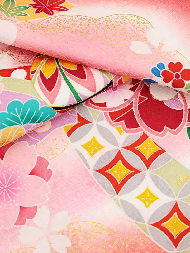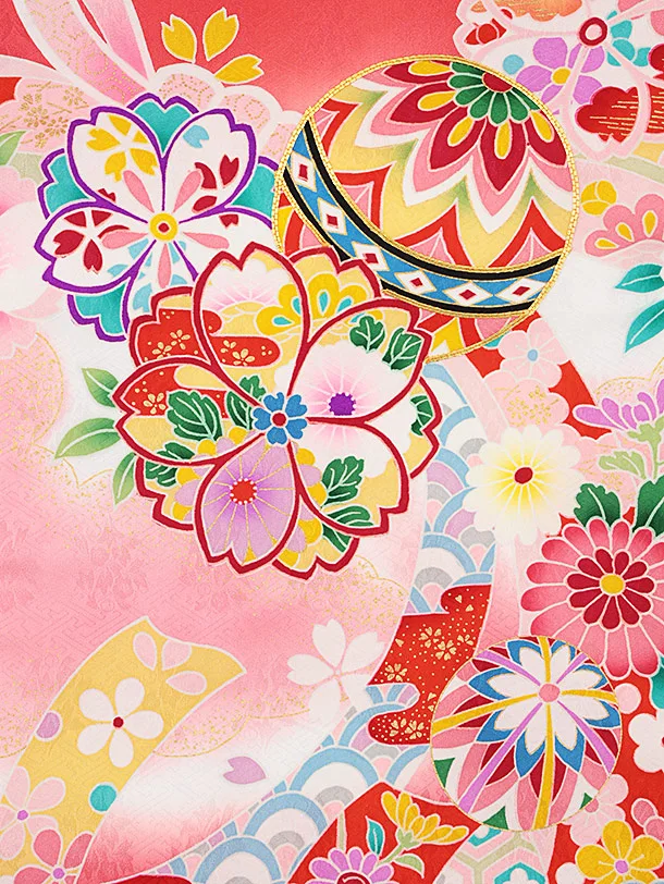 女児産着 お宮参りレンタル2257 コーラルピンク地 まりに桜