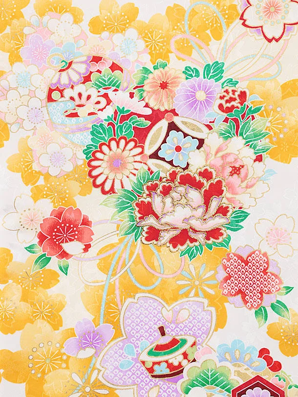 女児産着 お宮参りレンタル2270 白地 鈴に薬玉 黄色さくら