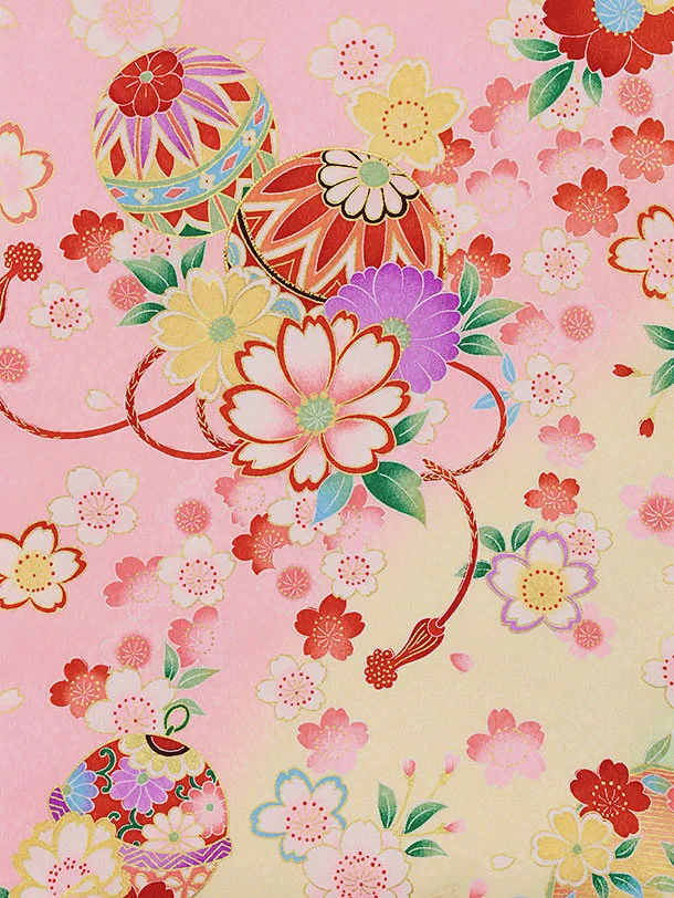 女児産着 お宮参りレンタル2272 ピンク地 まり桜