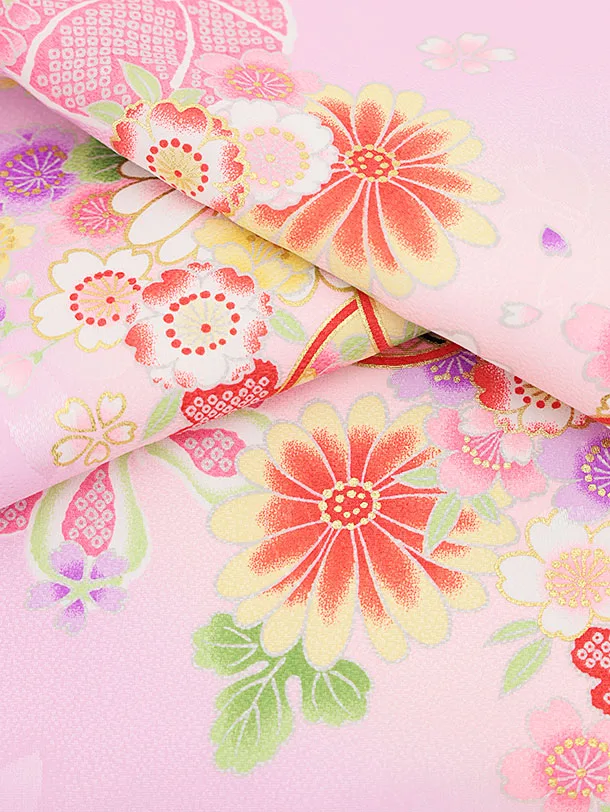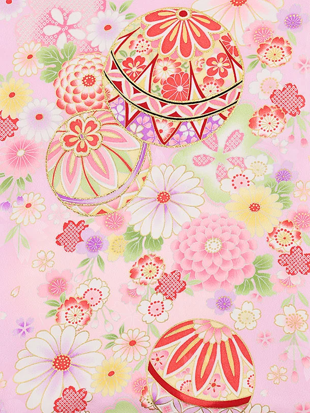 女児産着 お宮参りレンタル2277 なでしこ色 まり花