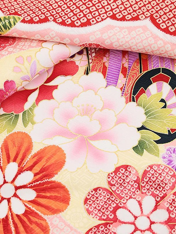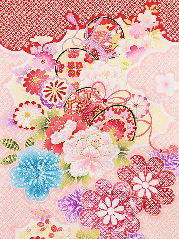 女児産着 お宮参りレンタル2280 赤地疋田柄 つづみに花