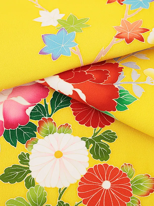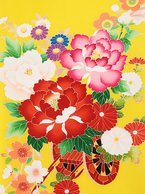 女児産着 お宮参りレンタル2282 黄色地 花車