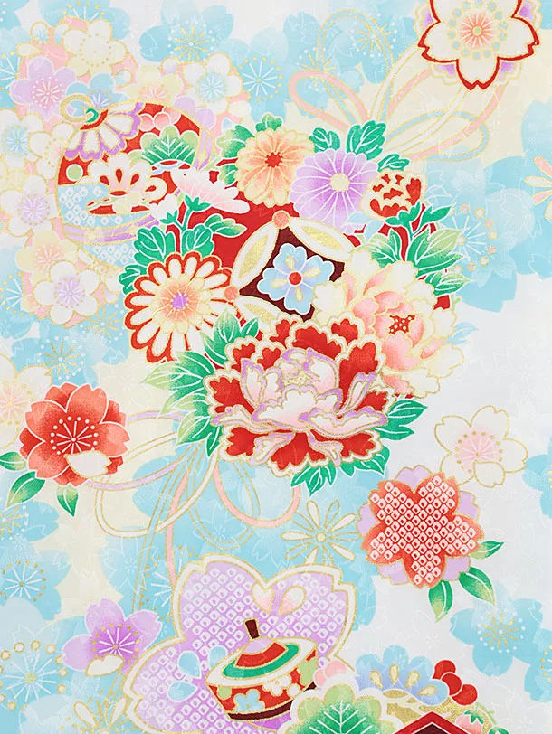 夏用 女児産着 お宮参り2309 単衣 白地 鈴に薬玉 水色桜