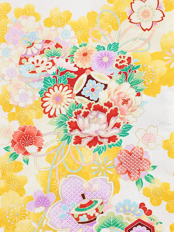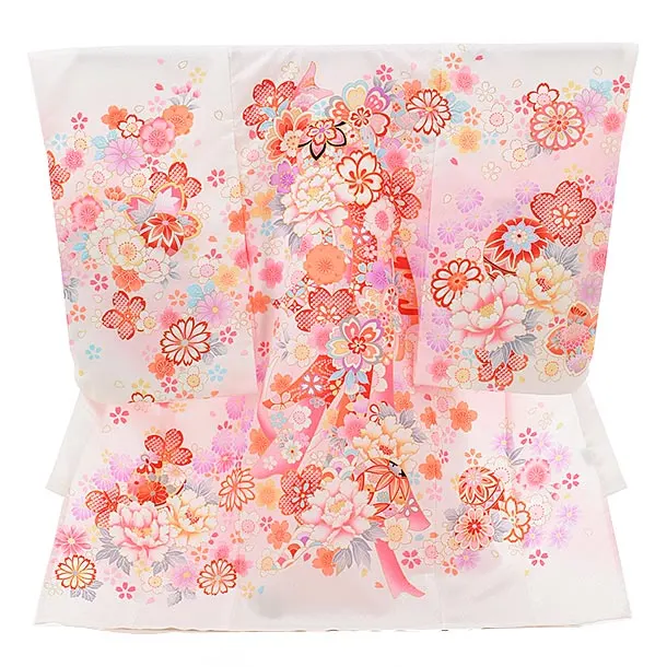 夏用 女児産着 お宮参り2311 単衣 白地 鈴に薬玉 黄色桜