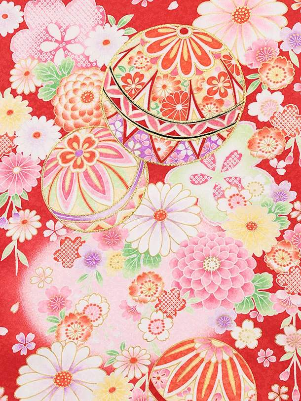 女児産着 お宮参りレンタル2356 赤地 鞠に花