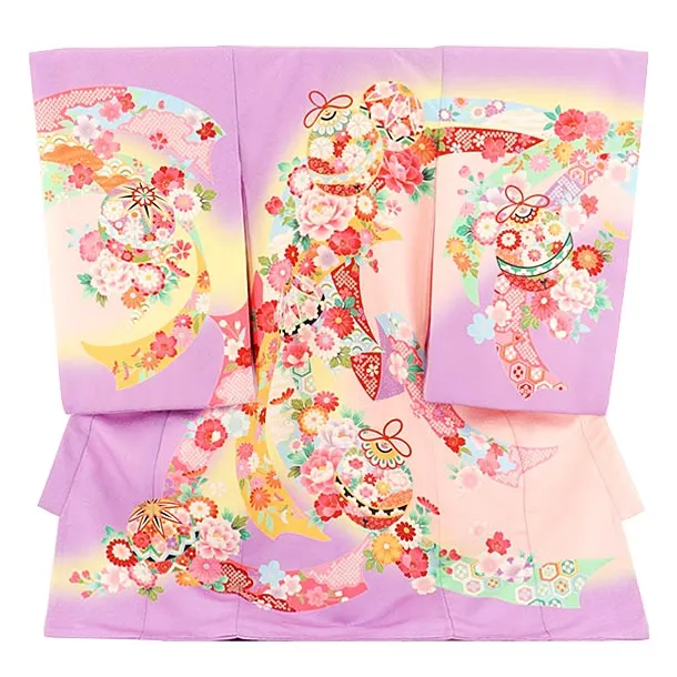 女児産着 お宮参りレンタル2358 薄紫 鞠に花