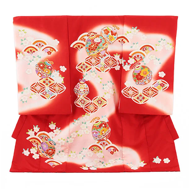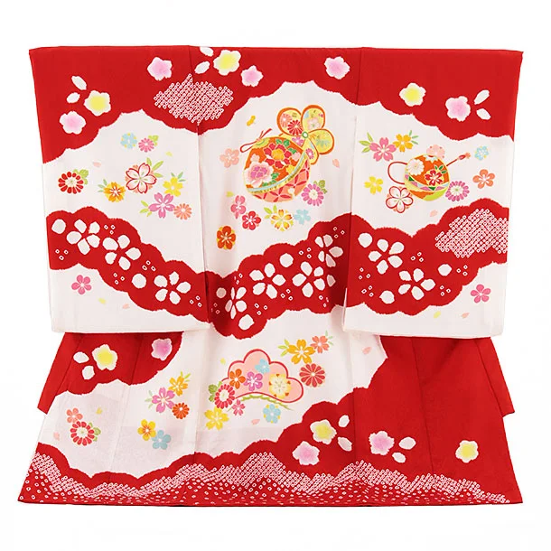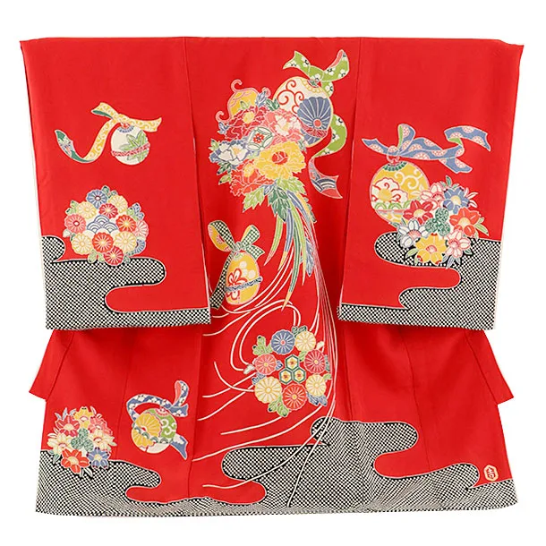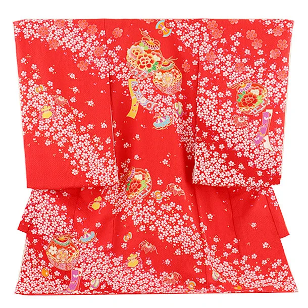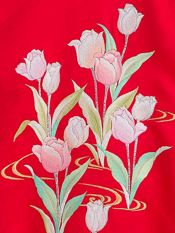 女児産着 お宮参り2363 【高級正絹】赤チューリップ刺繍(UVマジック)