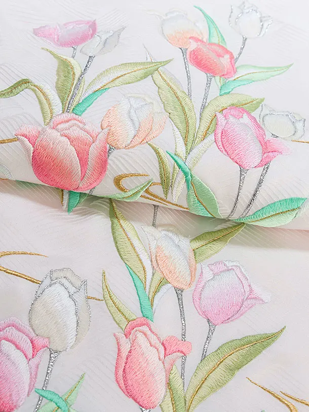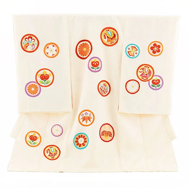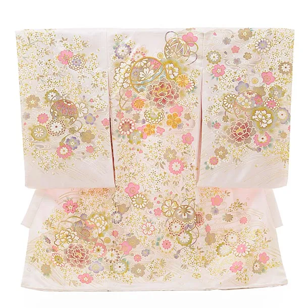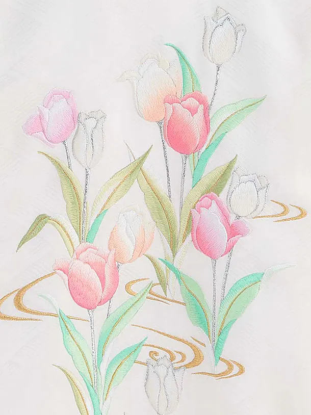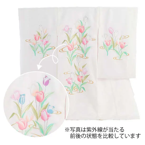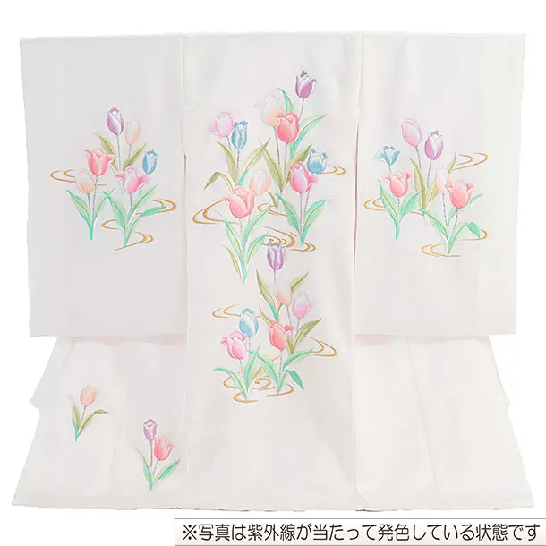 女児産着 お宮参り2364 【高級正絹】白チューリップ刺繍(UVマジック)