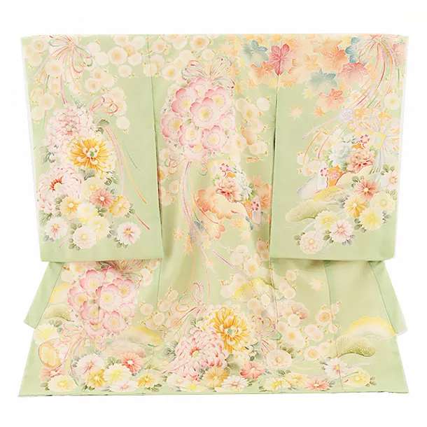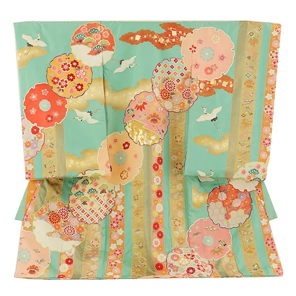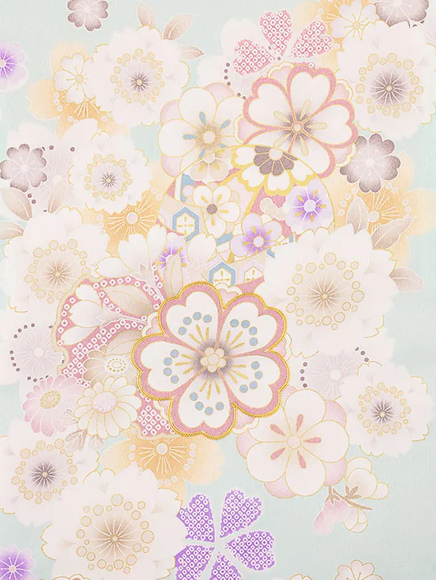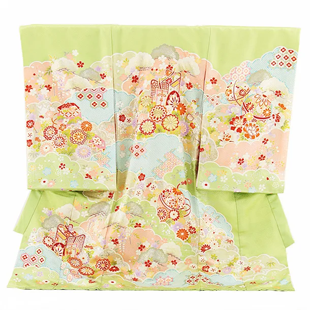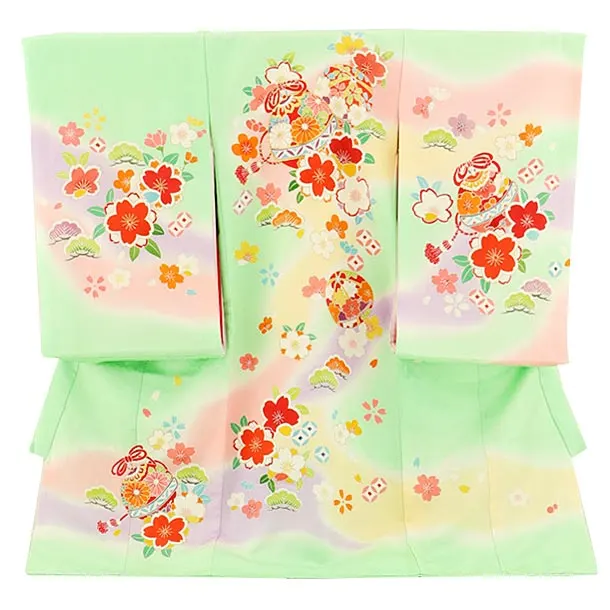 女児産着 お宮参りレンタル2386 パステルミント まりに桜