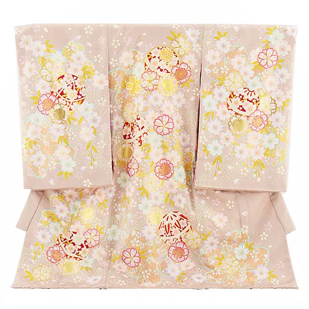 女児産着 お宮参りレンタル2389 黒茶 乱菊