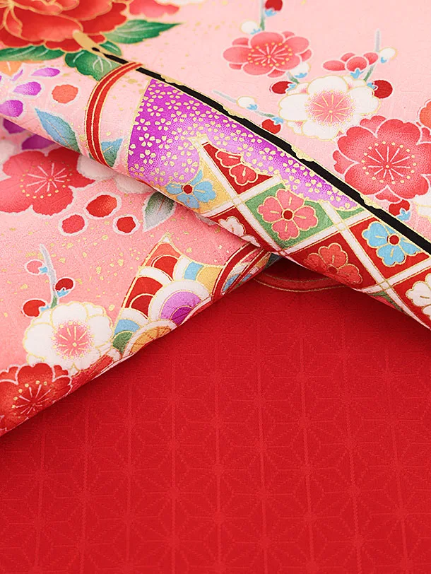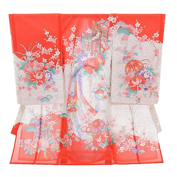 夏用 女児産着 お宮参り2456 単衣 赤地 御所車に花
