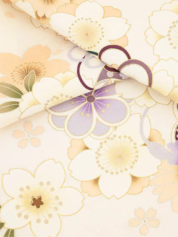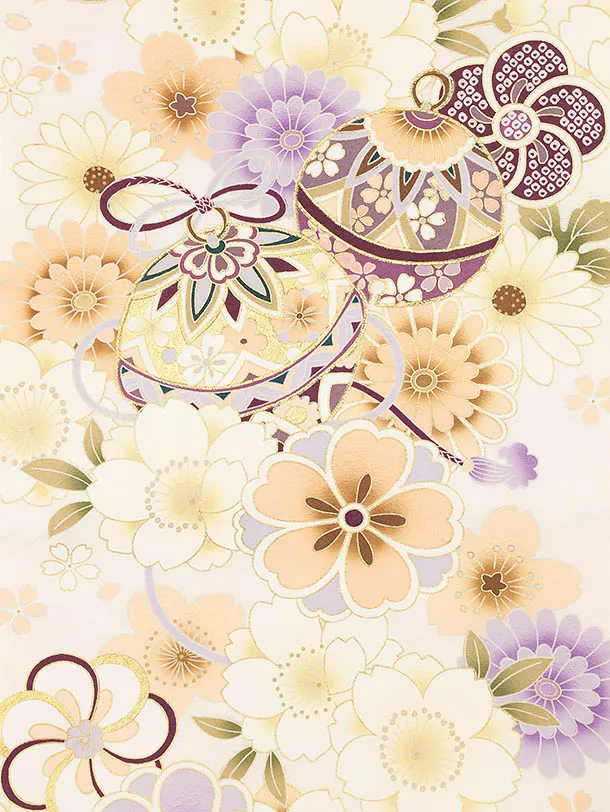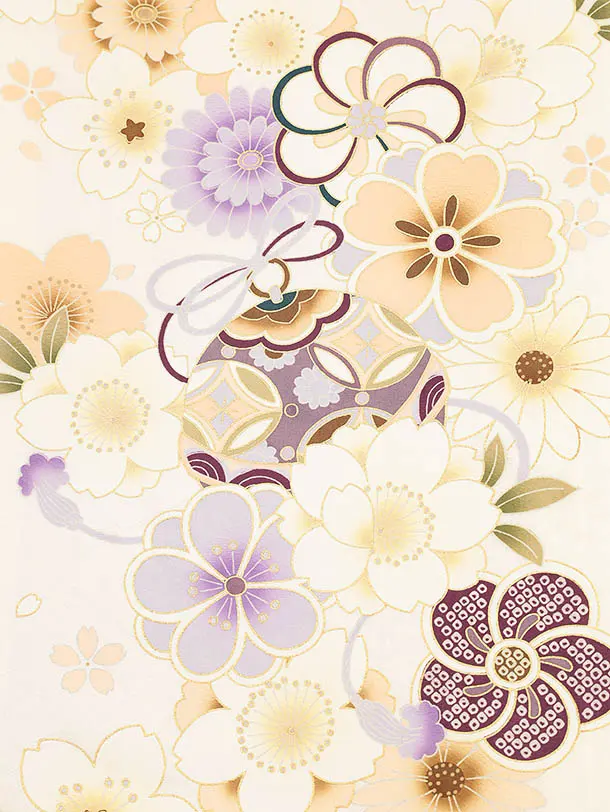 女児産着 お宮参りレンタル2491 【正絹】オフホワイト 鈴に花