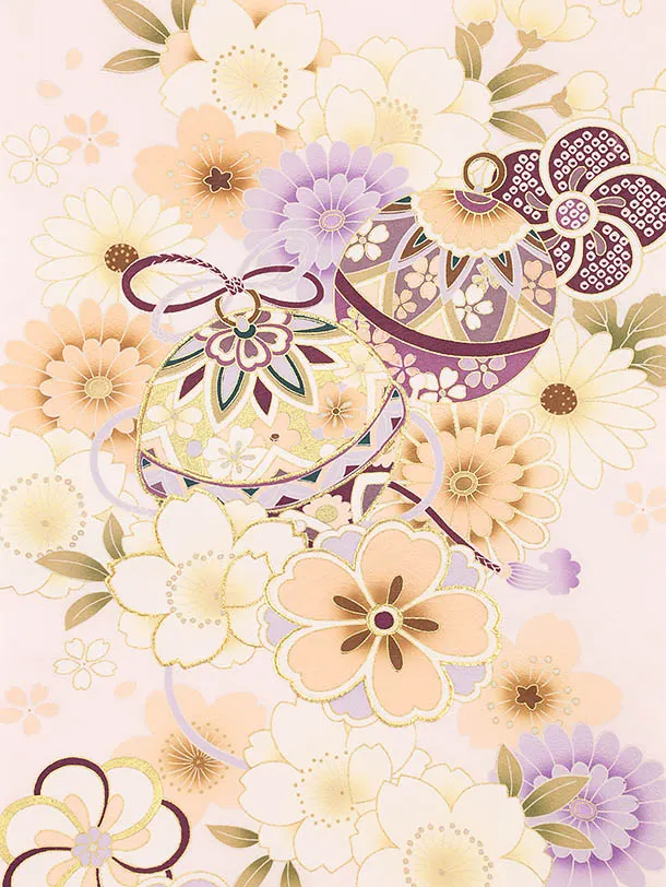 女児産着 お宮参りレンタル2492 【正絹】ピンク地 鈴に花
