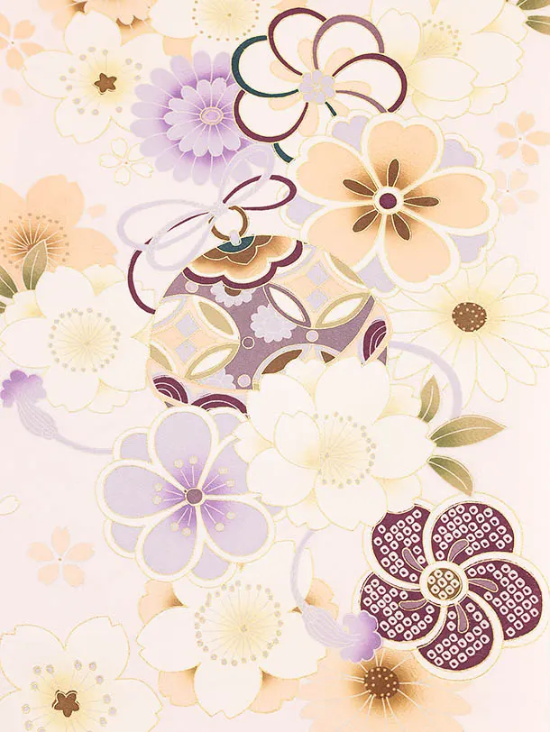 お祝い着をかける時は 絵柄がよく見える様に広げ抱いた子供の体を覆う様に掛け産着の付紐の一方を肩側から他方を脇から通して 抱き手の方の背で蝶結びにします。