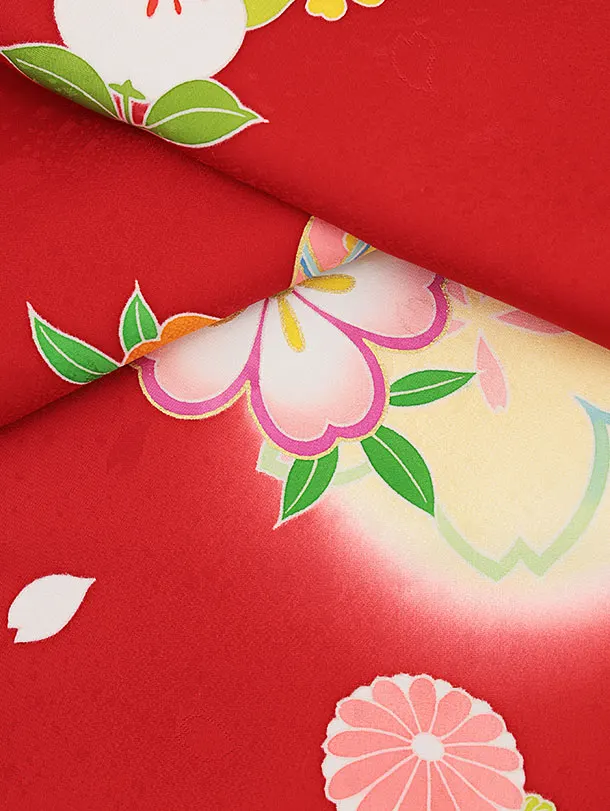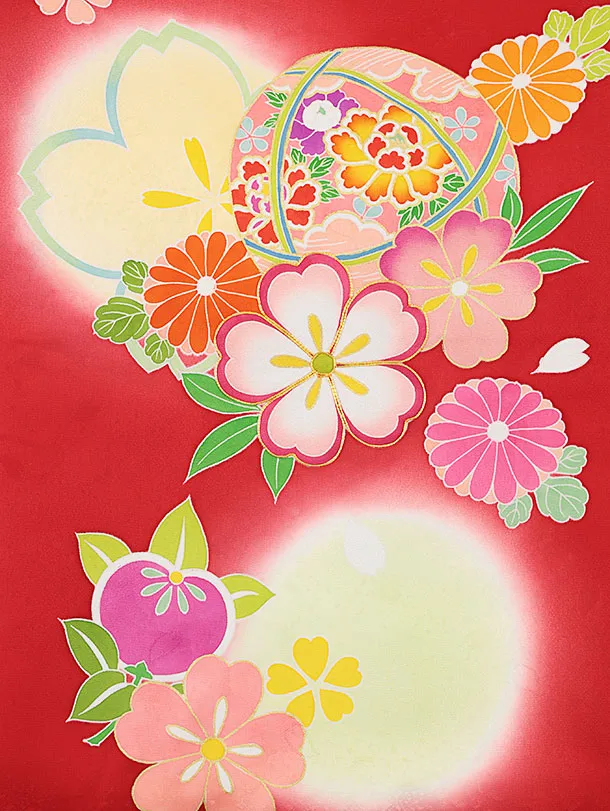女児産着 お宮参りレンタル2523【正絹】赤地 鞠と桜