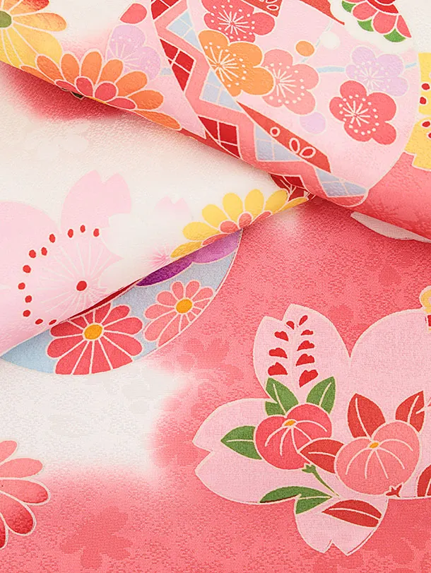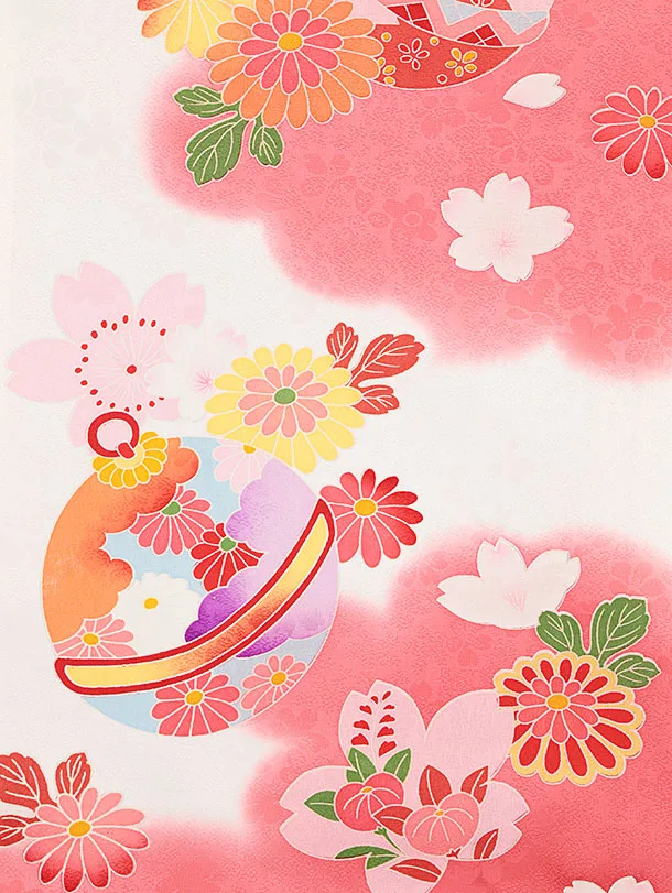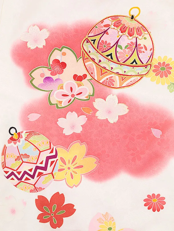女児産着 お宮参りレンタル2531【正絹】白地 ピンクに鈴と花