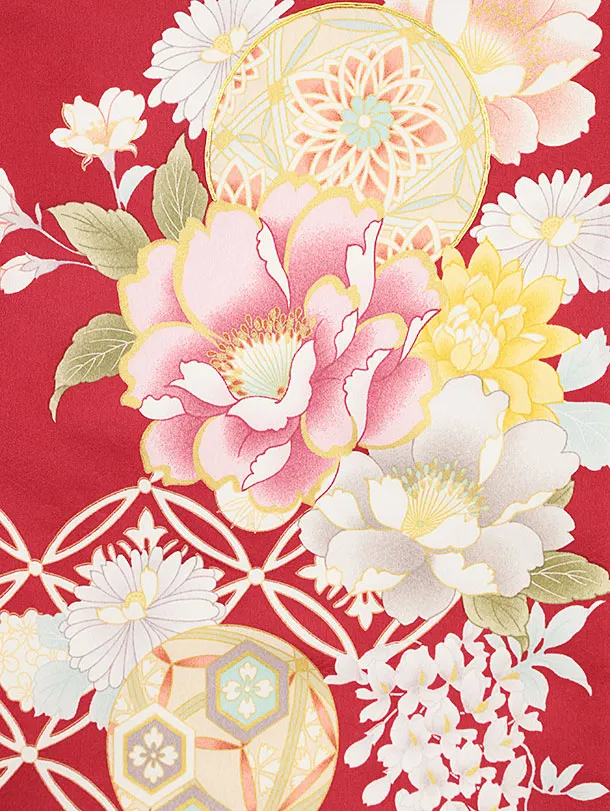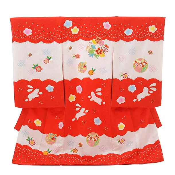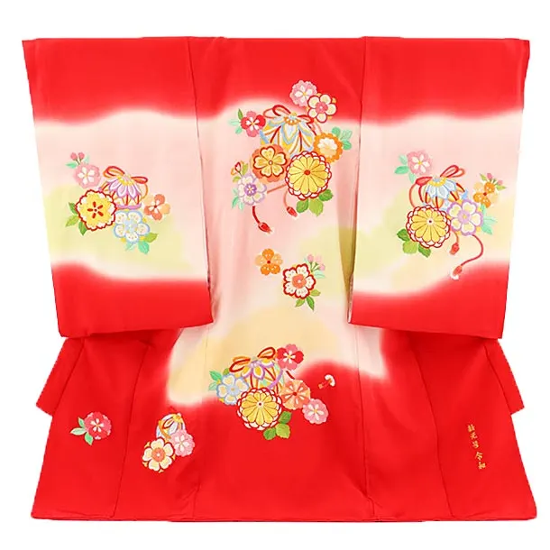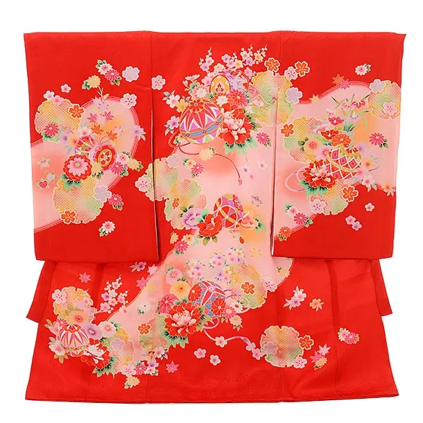 女児産着 お宮参り レンタル 2541 紅赤地 華鞠七宝