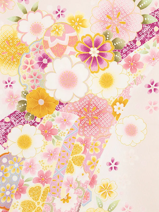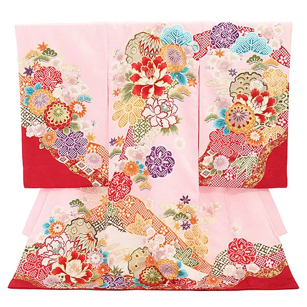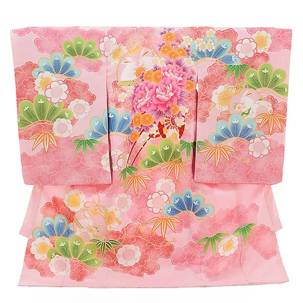 女児産着 お宮参り レンタル 2546 薄ピンク 花と熨斗