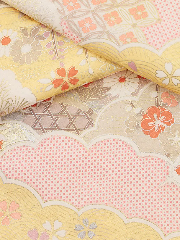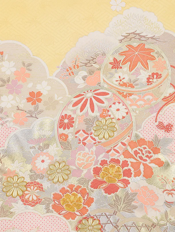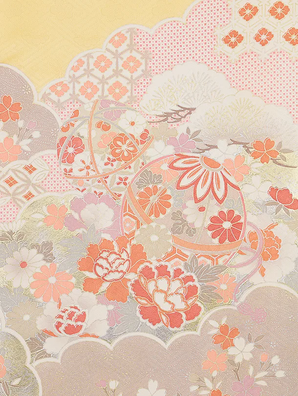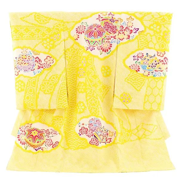 女児産着 お宮参りレンタル2650【正絹】伝産京友禅 薄黄色地 鞠に雲取り