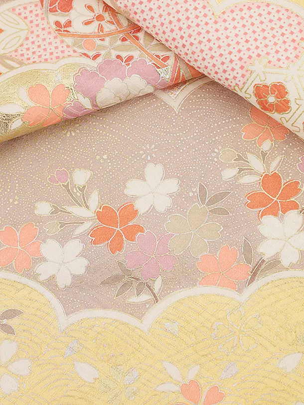 お祝い着をかける時は 絵柄がよく見える様に広げ抱いた子供の体を覆う様に掛け産着の付紐の一方を肩側から他方を脇から通して 抱き手の方の背で蝶結びにします。