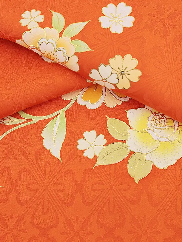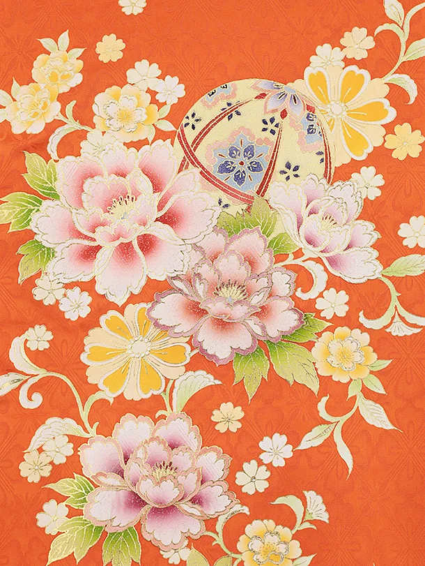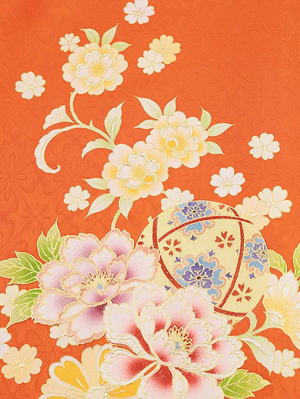 女児産着 お宮参りレンタル2654【正絹】オレンジ 牡丹に鞠
