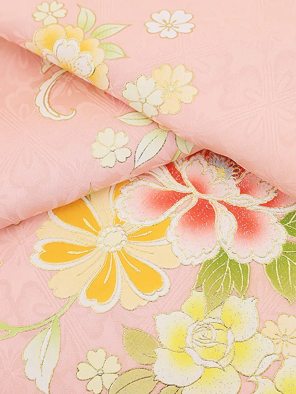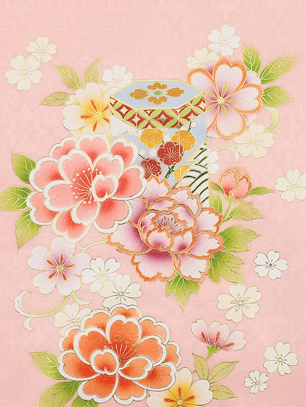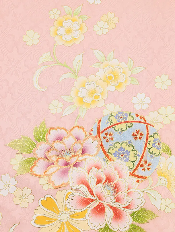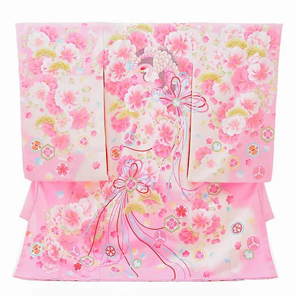 女児産着 お宮参りレンタル2657【正絹】ピンク地 貝桶に牡丹