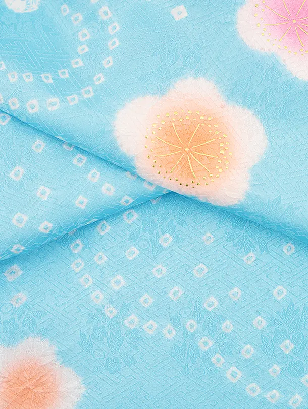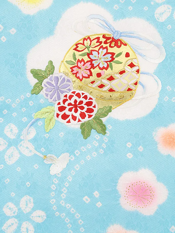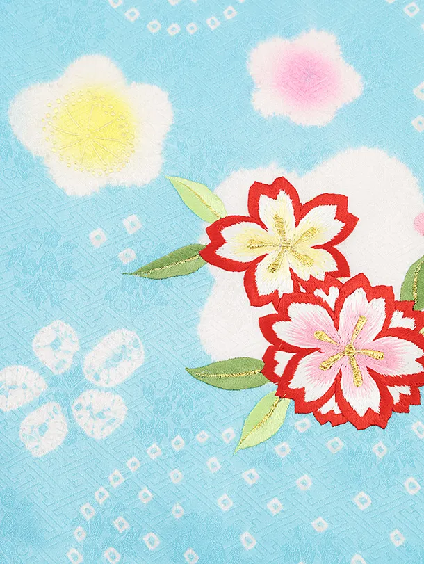 女児産着 お宮参りレンタル2662【正絹】水色地 鈴に刺繍桜と梅