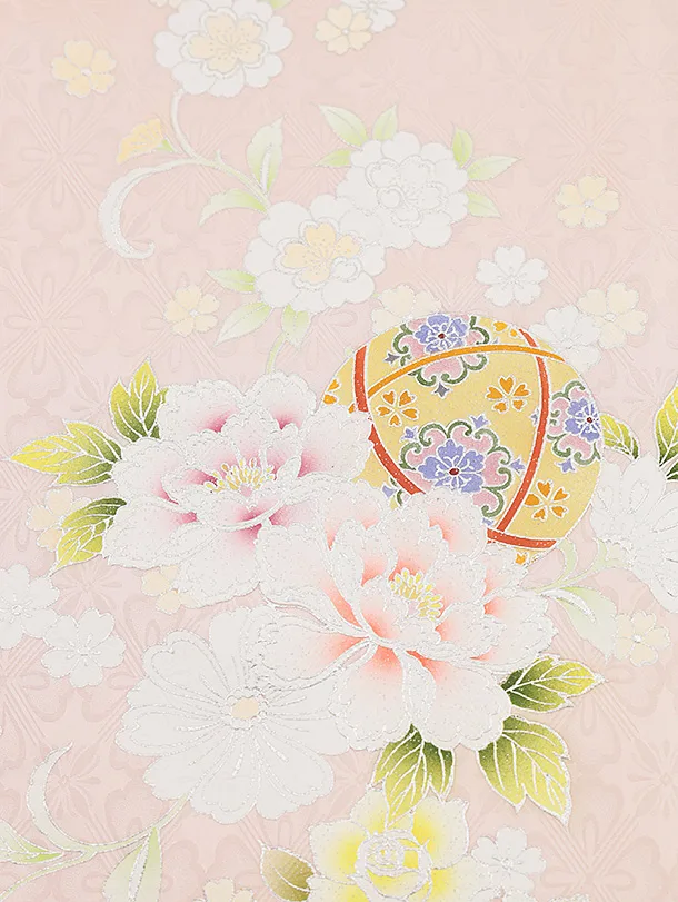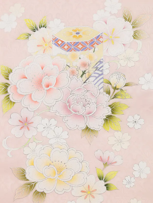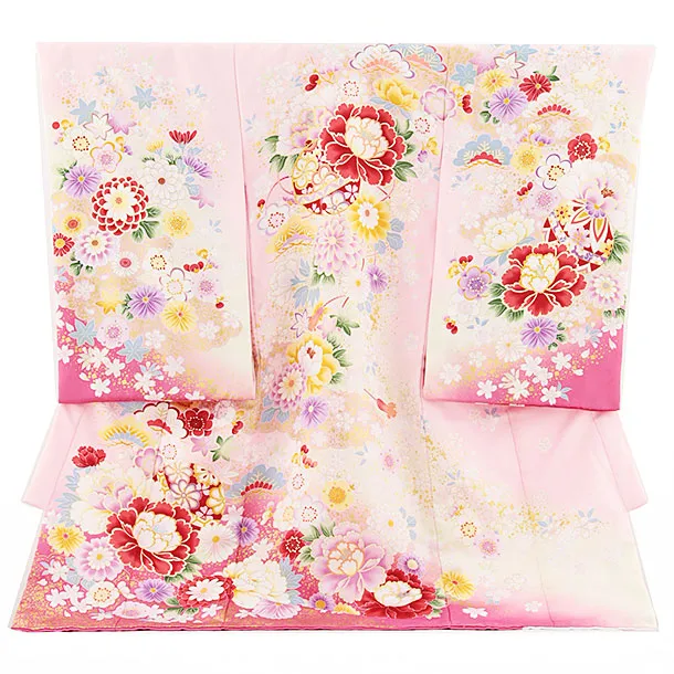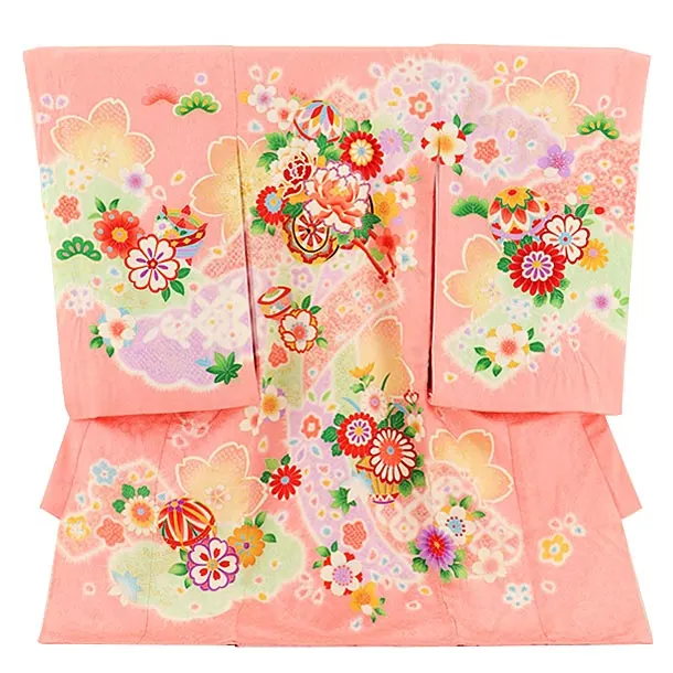 女児産着 お宮参り2678【正絹】伝産京友禅 薄ピンク地 貝桶に牡丹