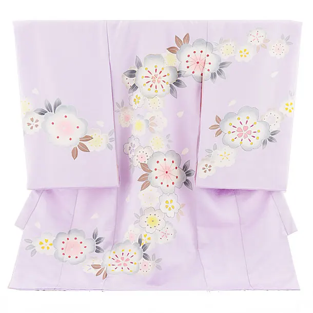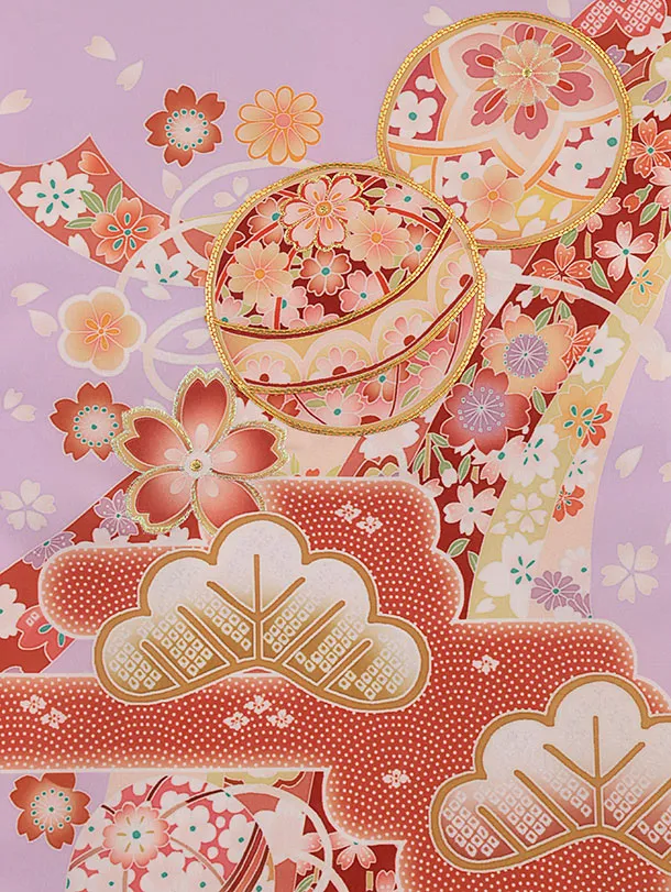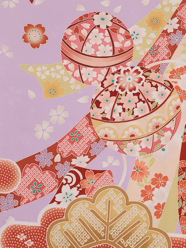 女児産着 お宮参り レンタル2719 パープル地 鞠と熨斗に松
