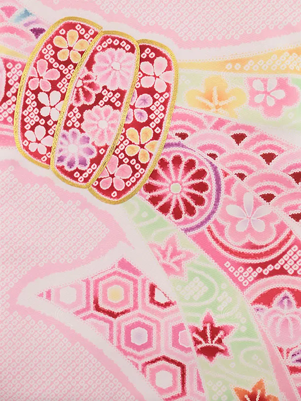 女児産着 お宮参り レンタル2726 薄ピンク 鹿の子柄 束ね熨斗