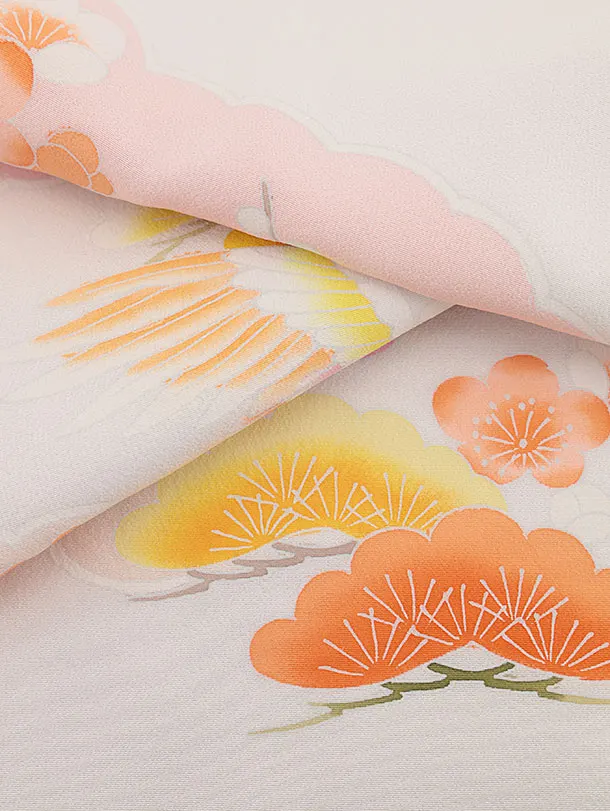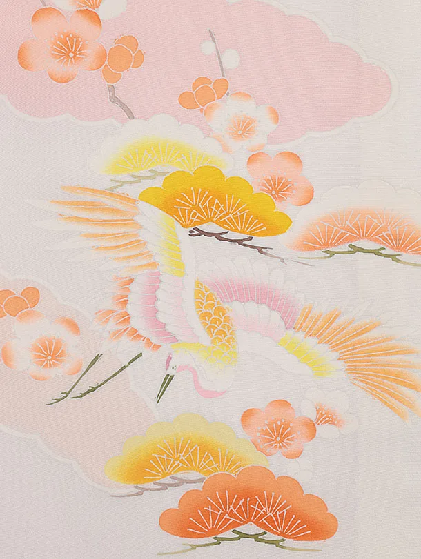 女児産着 お宮参りレンタル2728【正絹】白地 松竹梅に鶴