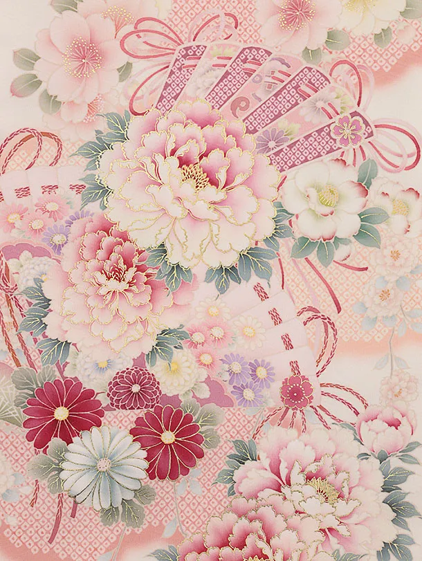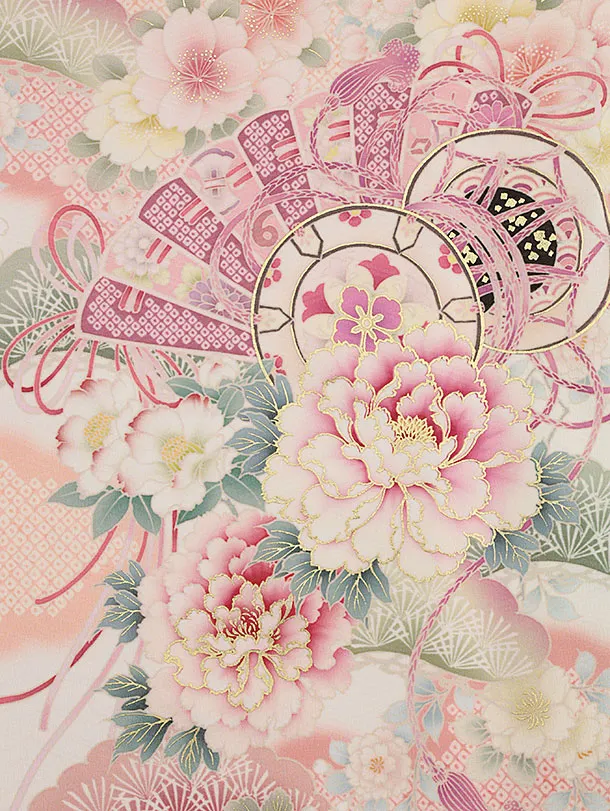 女児産着 お宮参り レンタル2740 華徒然 薄ピンク 春秋扇面