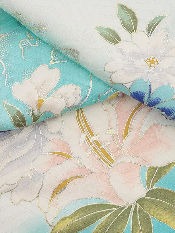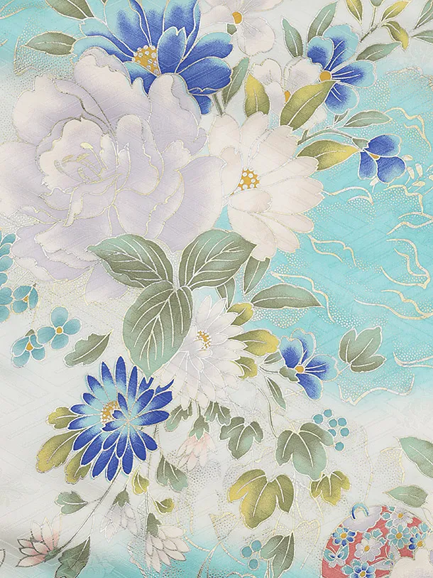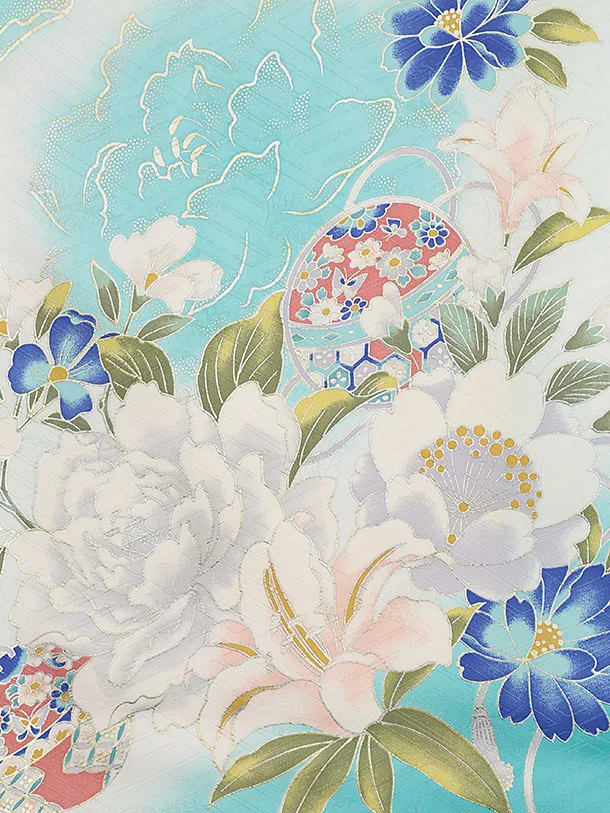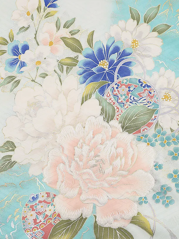 女児産着 お宮参りレンタル2836【正絹】伝産京友禅 水色 牡丹鈴