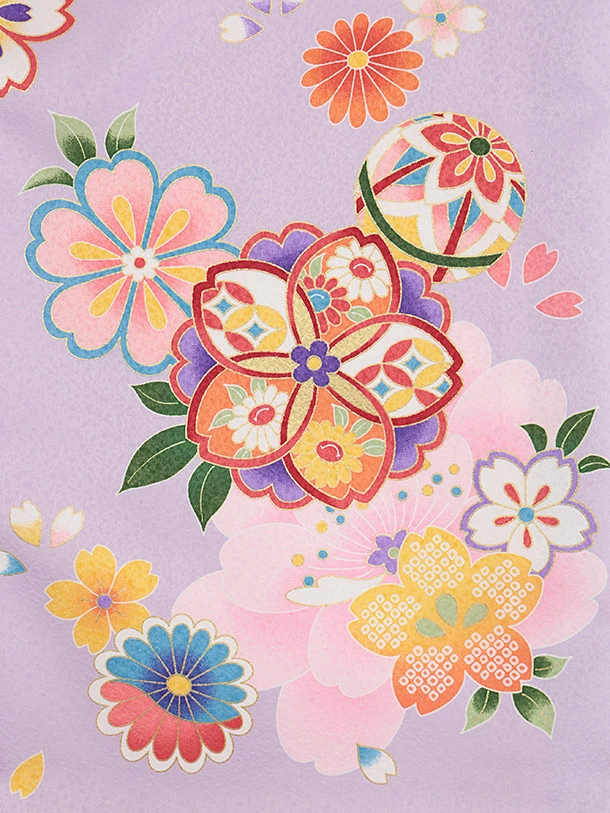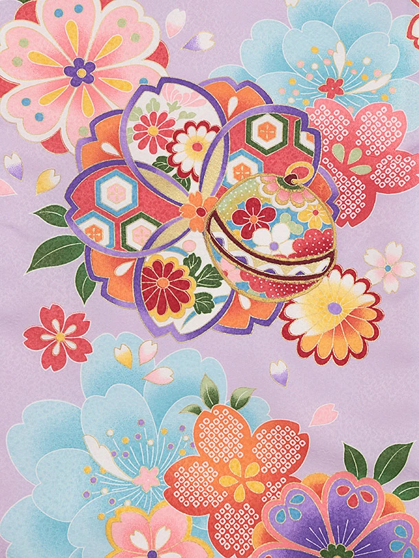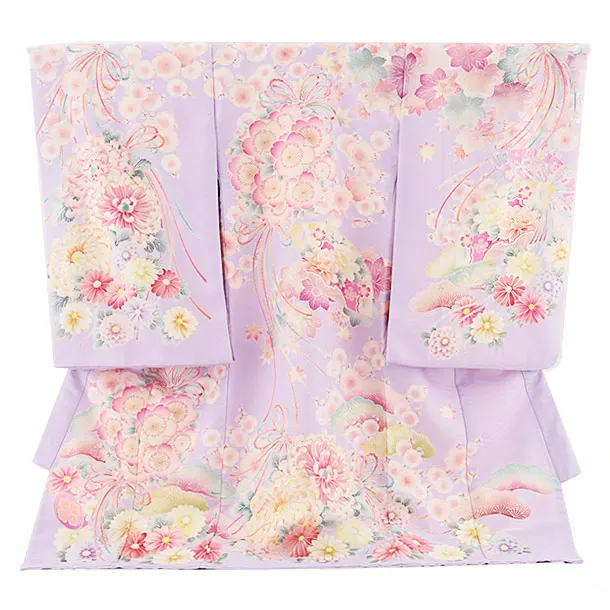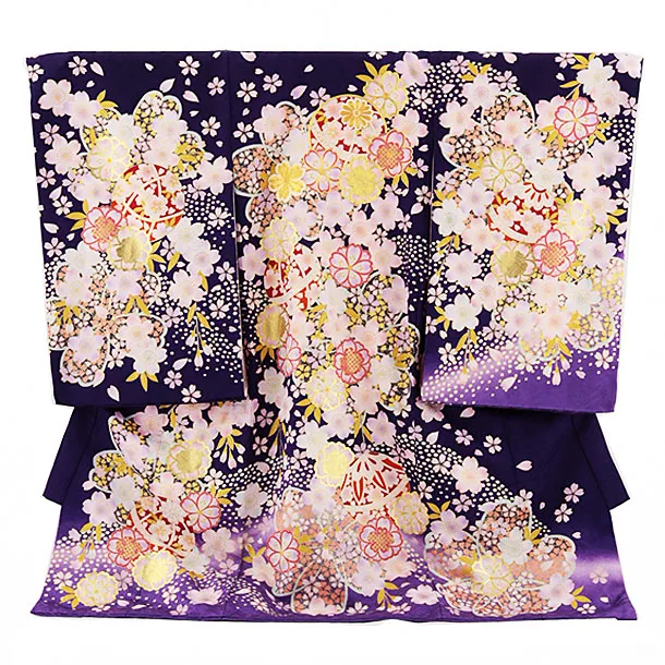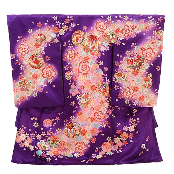 女児産着 お宮参りレンタル2843 紫地 八重桜に鈴