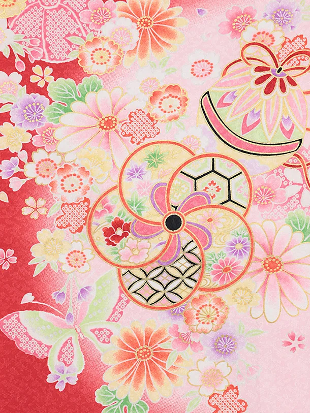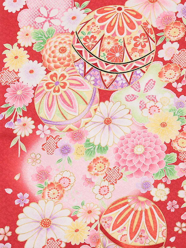 女児産着 お宮参りレンタル2868 赤地 鞠に花