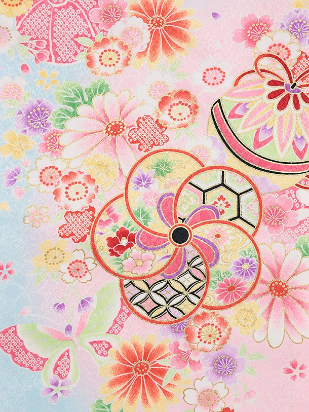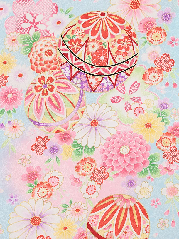 女児産着 お宮参りレンタル2870 水色 鞠に花