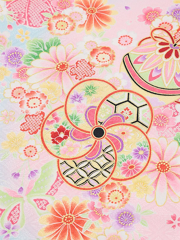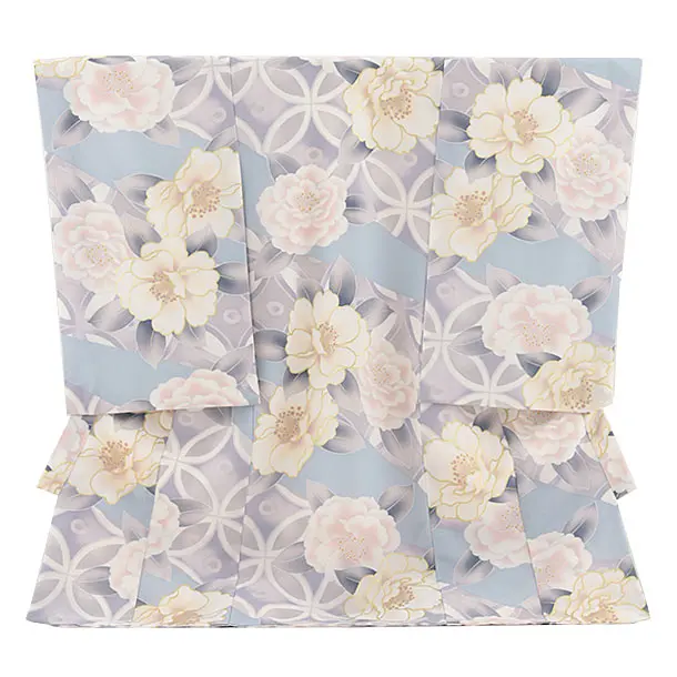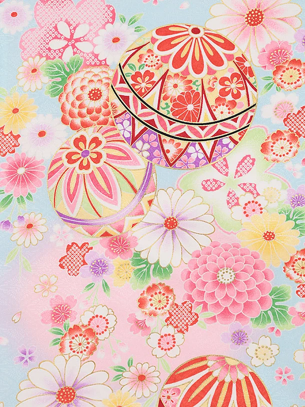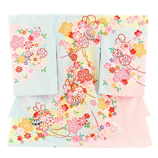 女児産着 お宮参りレンタル2871 水色 鞠に花