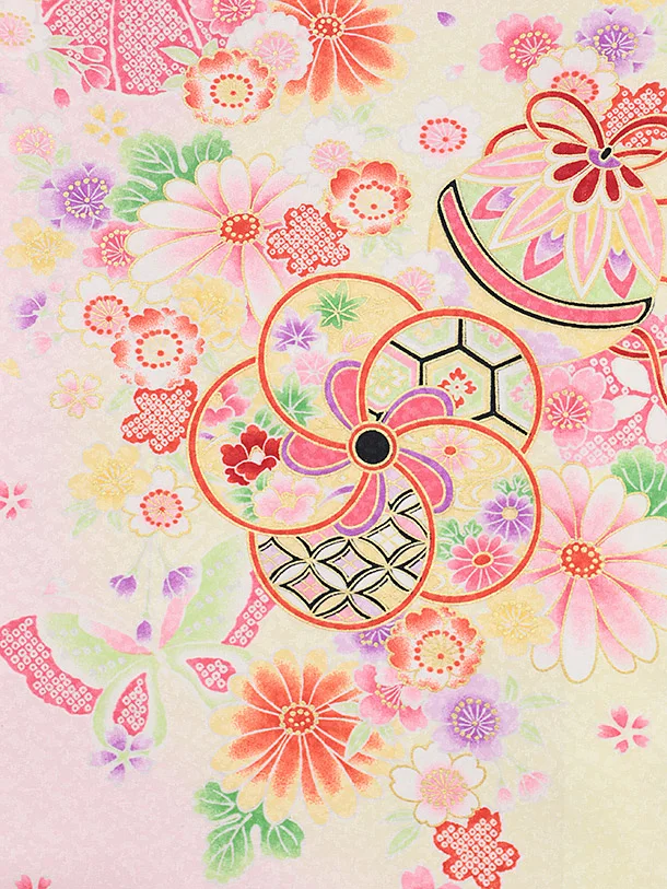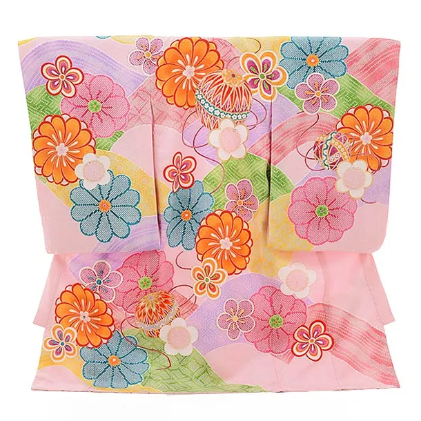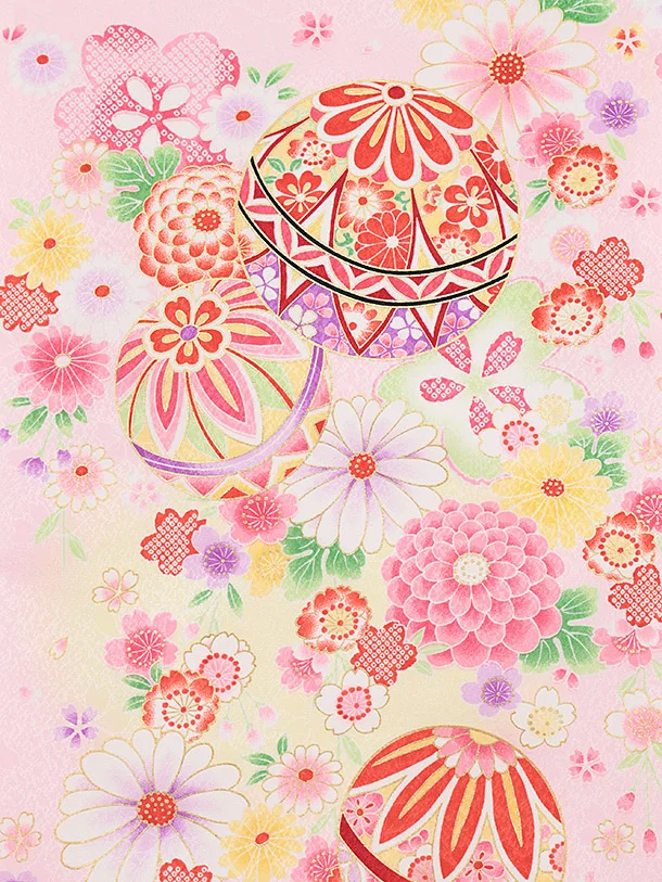 女児産着 お宮参りレンタル2872 ピンク 鞠に花