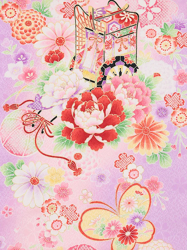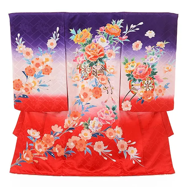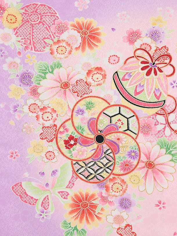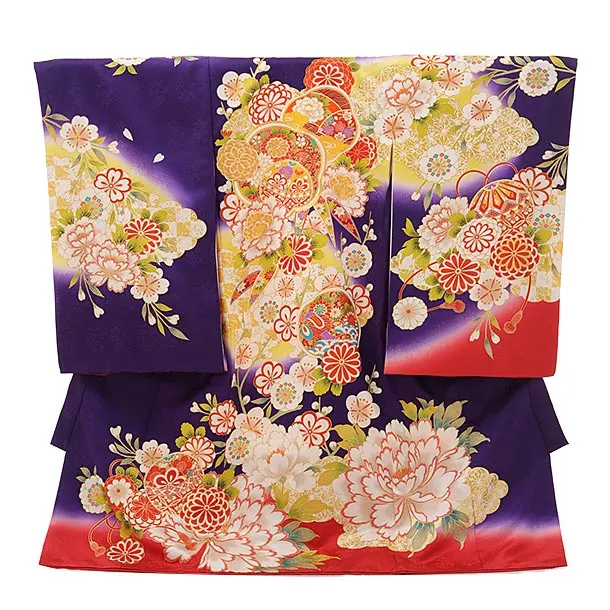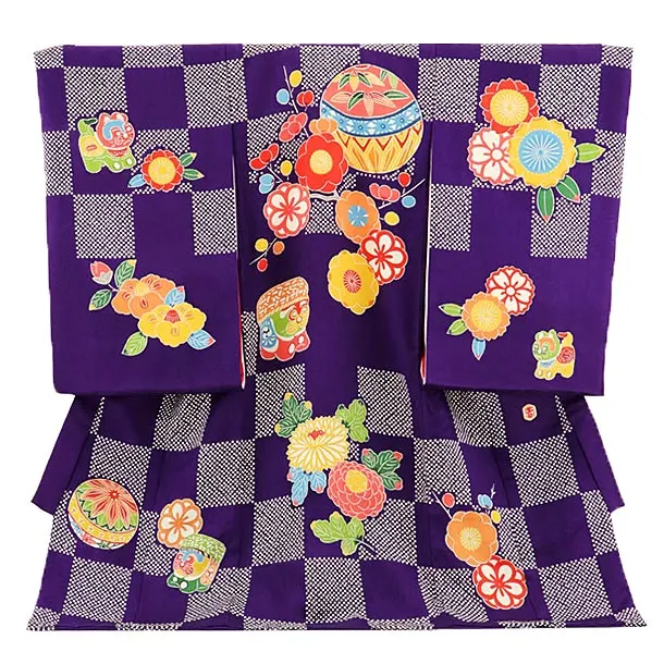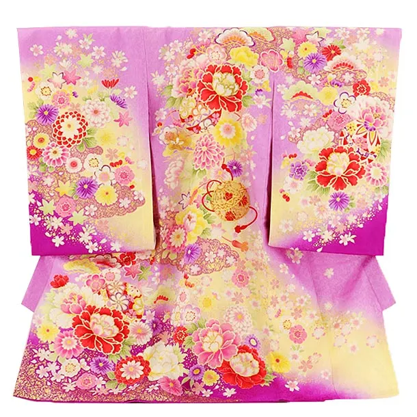 女児産着 お宮参りレンタル2878 パープル 御所車 鞠花