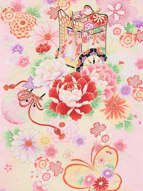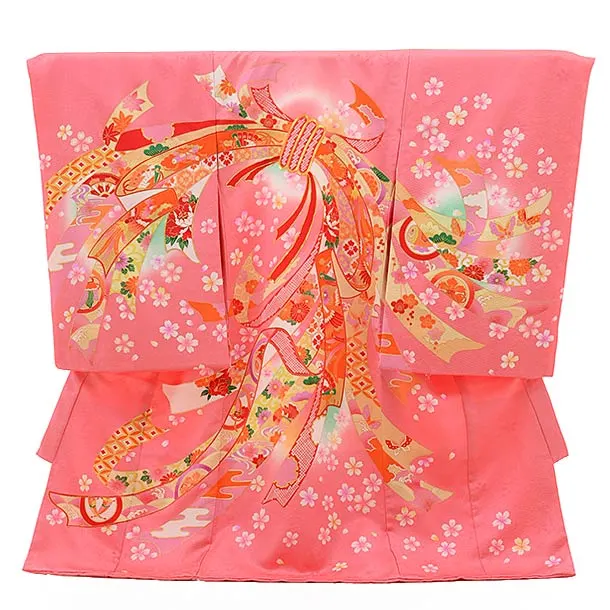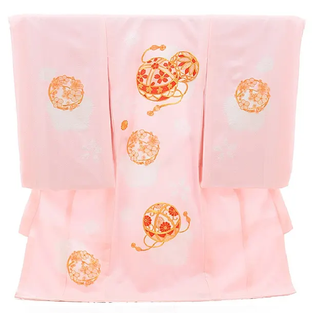 女児産着 お宮参りレンタル2883 ピンク地 御所車 鞠花
