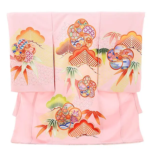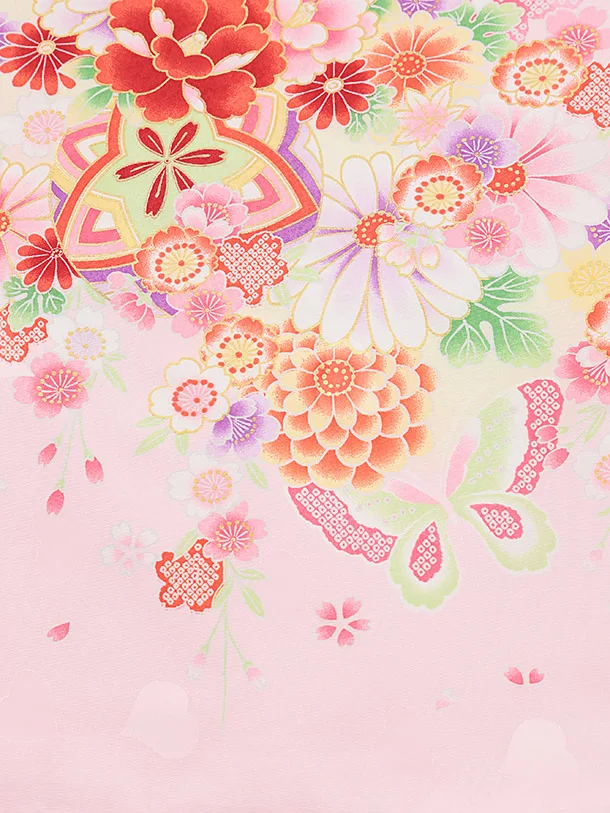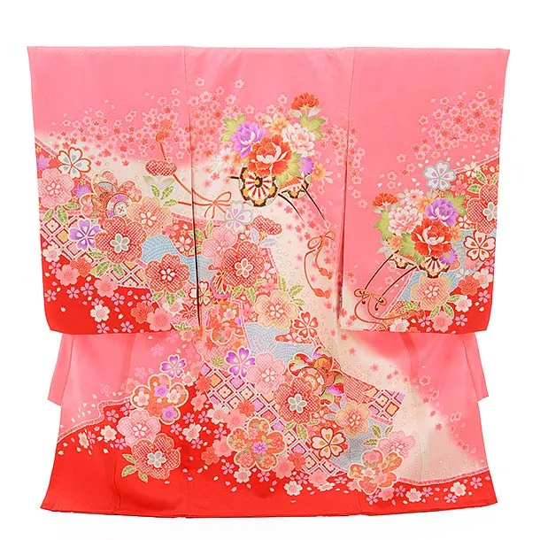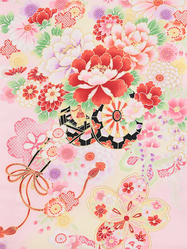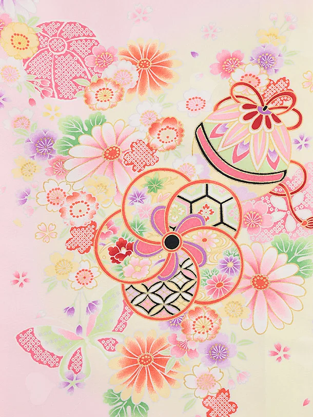女児産着 お宮参りレンタル2886 ピンク 花車 鞠と花
