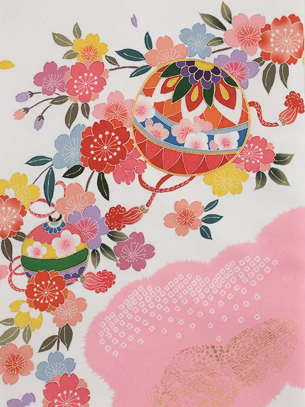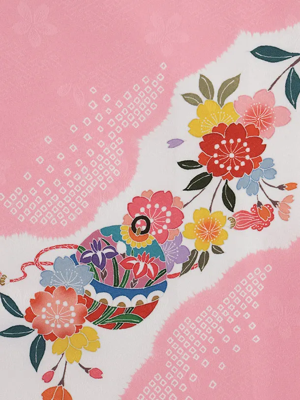 女児産着 お宮参りレンタル2901 白×ピンク 鈴に桜