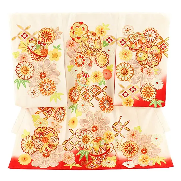 女児産着 お宮参りレンタル2921 白地 刺繍花
