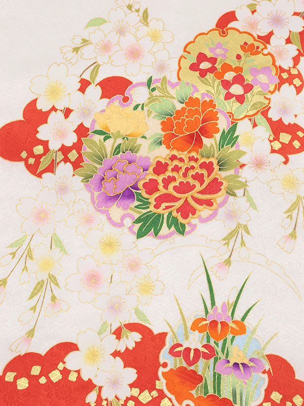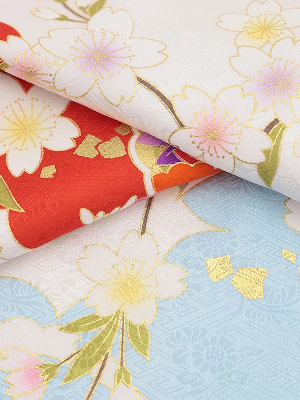 お祝い着をかける時は 絵柄がよく見える様に広げ抱いた子供の体を覆う様に掛け産着の付紐の一方を肩側から他方を脇から通して 抱き手の方の背で蝶結びにします。