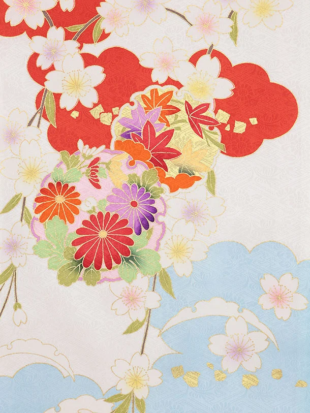 女児産着 お宮参りレンタル2972【正絹】 白地裾水色 雲取り雪輪に花