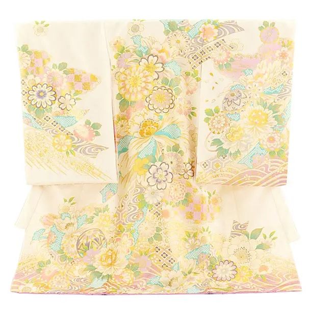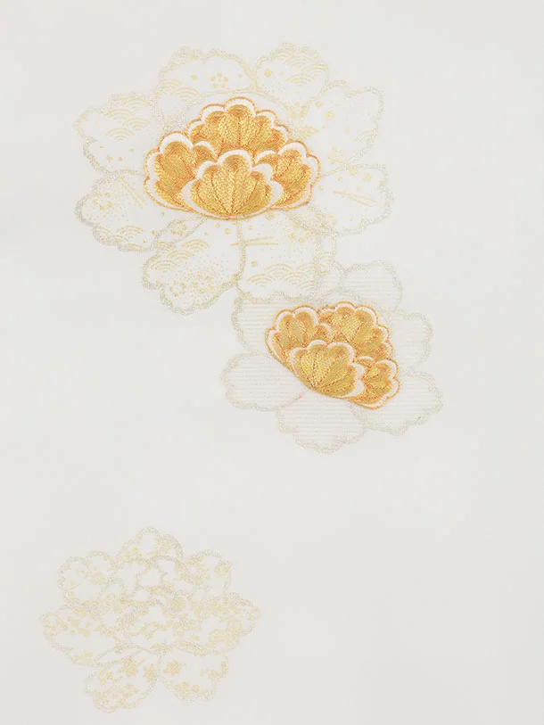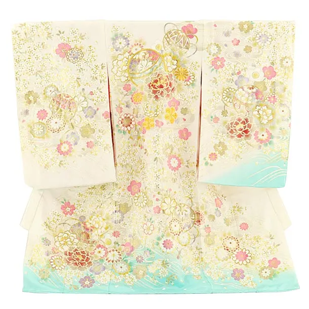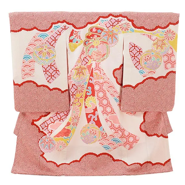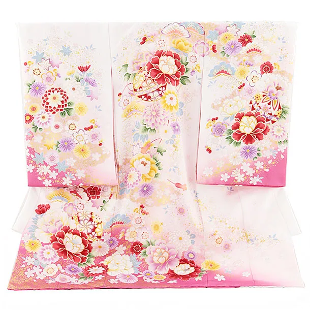 女児産着 お宮参りレンタル2975 白地 金コマ 牡丹