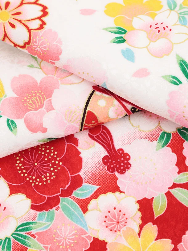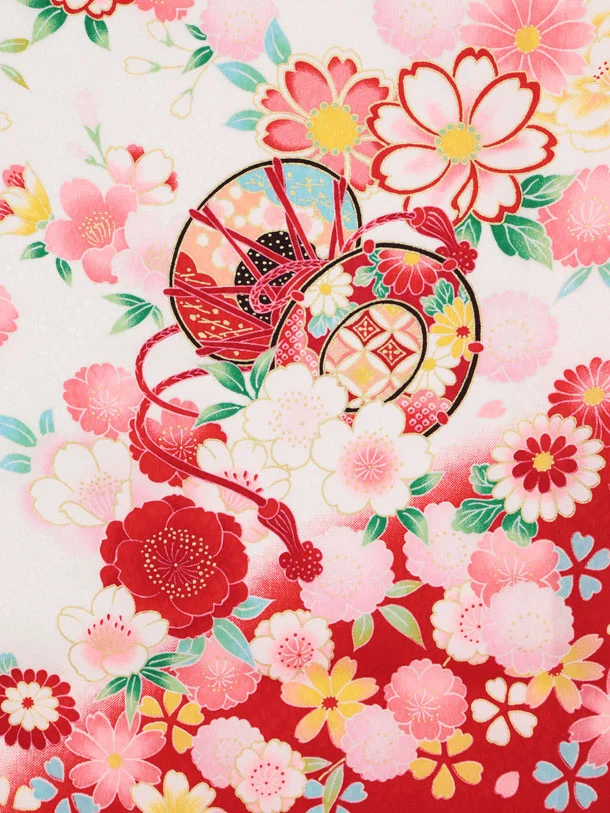 女児産着 お宮参りレンタル2988【正絹】 白地裾赤 鞠に花づくし