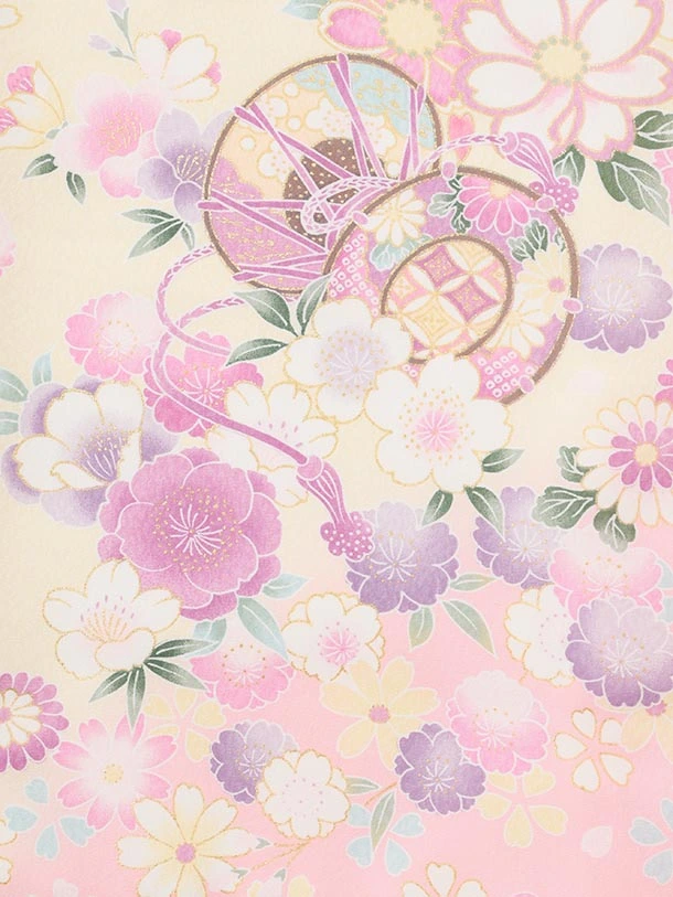 女児産着 お宮参りレンタル2998 薄ピンク 花車に桜
